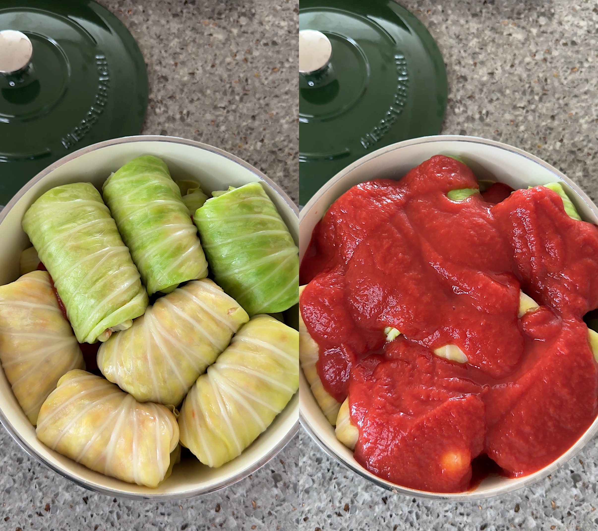 양배추 1단 쌓고 토마토소스 다시 부어요,